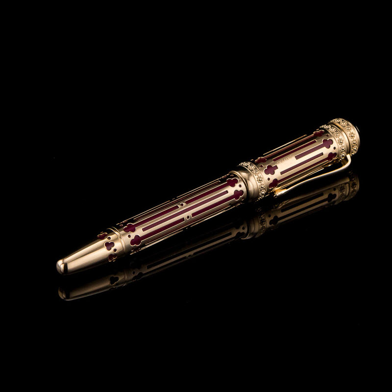 Chiếc bút máy này có kích thước 144mm (5,66 inch) và nó được trang bị ngòi bút chế tạo từ vàng nguyên khối Au750/18K, trên đó có khắc biểu tượng của chế độ quân chủ Nga – đại bàng hai đầu. Ngoài ra trên đỉnh nắp cũng được đính các viên đá ruby hồng quý giá.